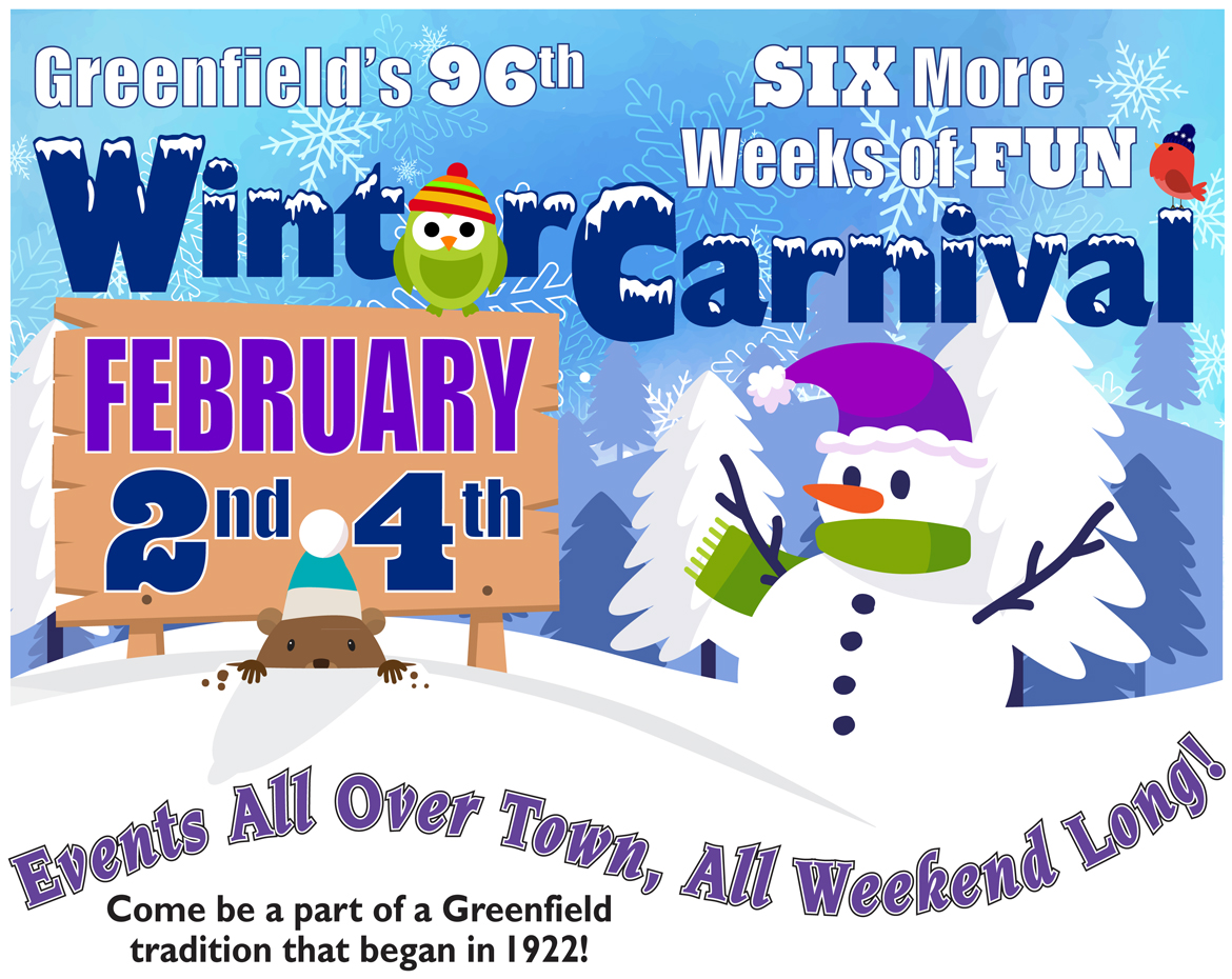 9:30 am-5:00 pm – 1st Annual Winter Carnival Instagram Scavenger Hunt – Check in and register at the library. Visit www.greenfieldpubliclibrary.org for more information.
